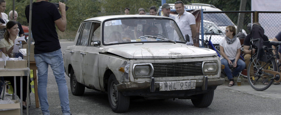 For Poles, German cars are a symbol of reliability. Bogdan Różycki's 51-year-old Wartburg seems to confirm this opinion. Although he had to reinforce the turn signals with duct tape and uses a string to keep the doors closed, once some worn-out bearings were replaced with ones taken from a tractor, he’ll manage to get a few hundred kilometers more out of the car yet. Bogdan thus packs two sisal bags in the car and takes his 94-year-old mother on a journey so that he can find out more about what happened to his parents—Kazimiera and his late father—during the war. Along the way, they visit Majdanek, Konin, Pyzdry, Bar Avocado, gas stations, car garages and motels before finally reaching the suburbs of Magdeburg and the Junkers factory, where Bogdan's mother was forced to work as a young girl.